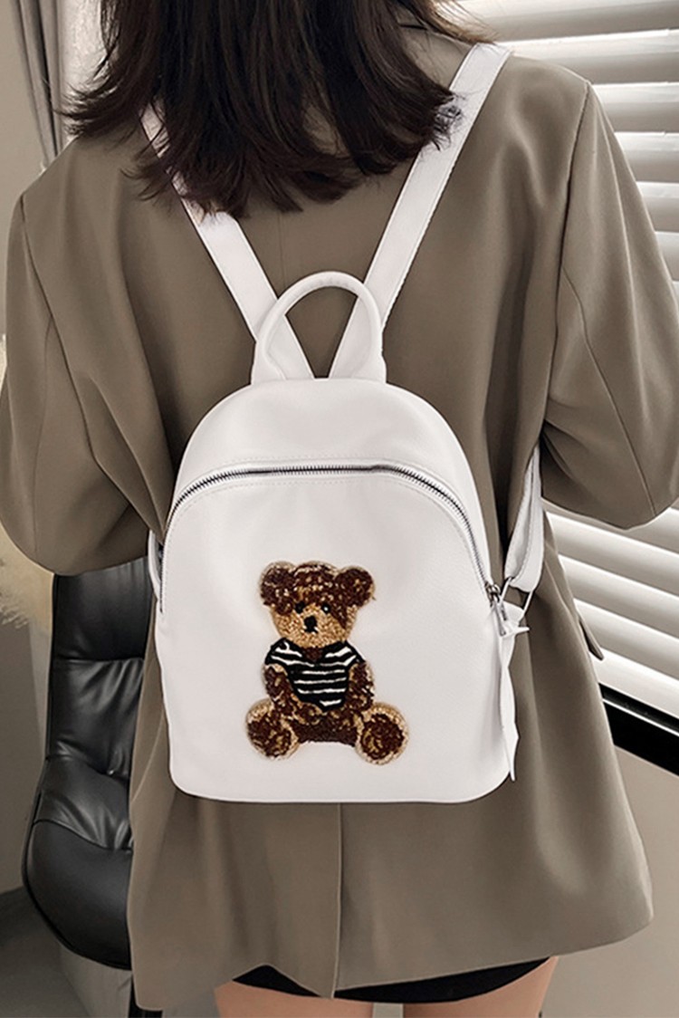 - Alege un rucsac de dama ingrijit, cu urs aplicat, cu care vei crea un look non-standard.