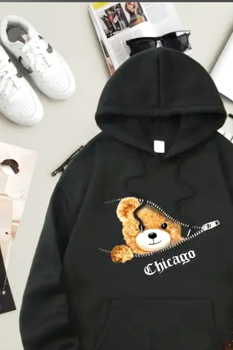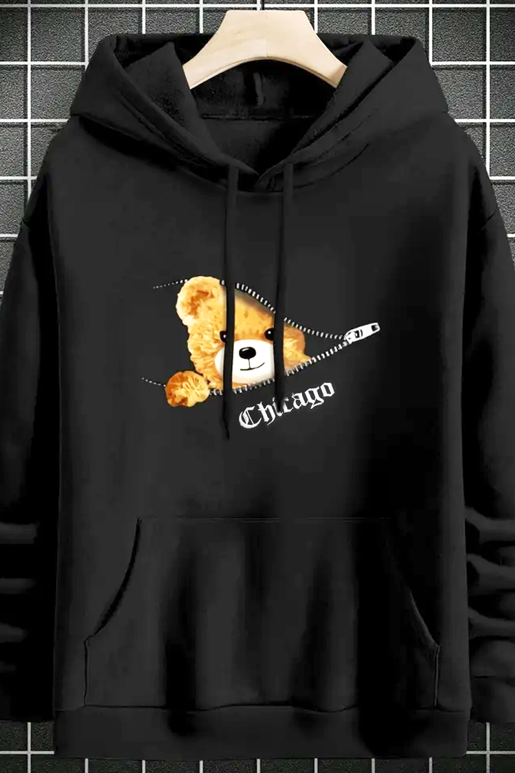 - Hanorac practic pentru bărbați, cu ursuleți de culoare neagra, potrivit pentru diverse combinații vestimentare.