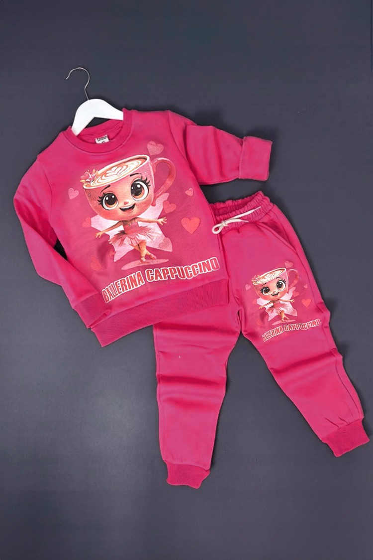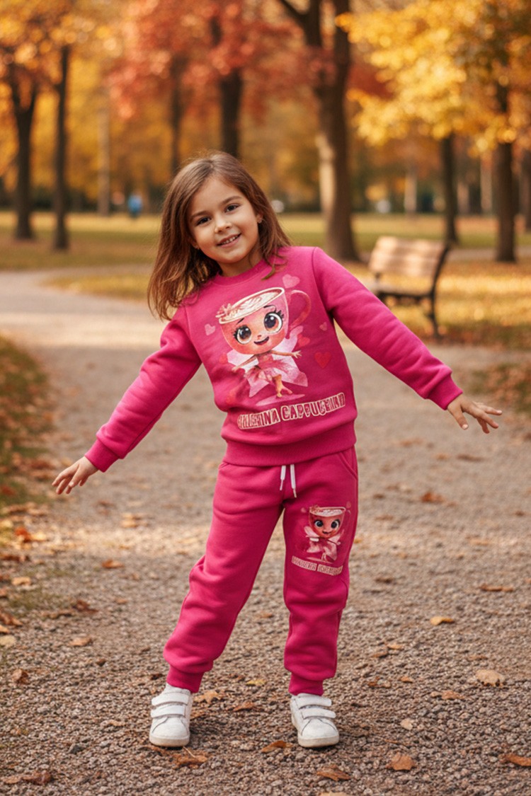 - Set din două piese, pentru fete, format dintr-o bluză și pantaloni cu un imprimeu la modă.