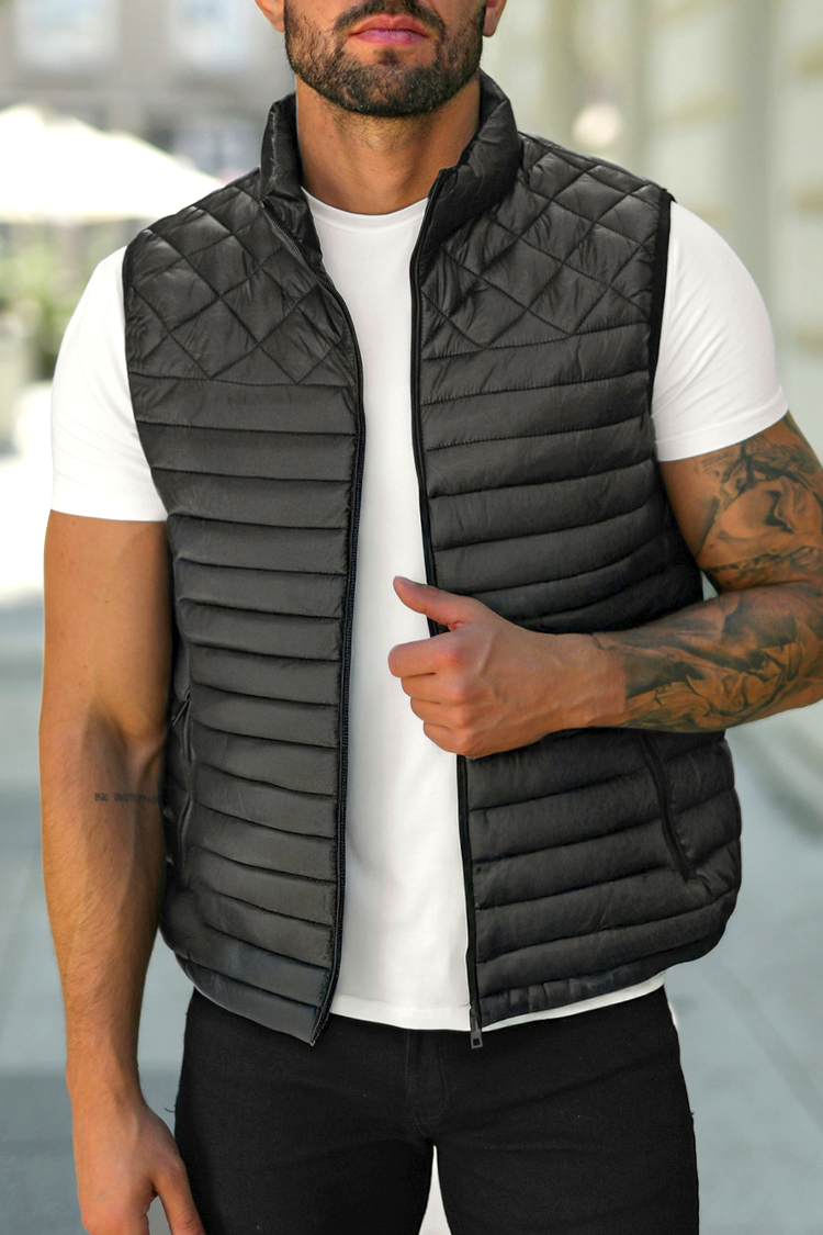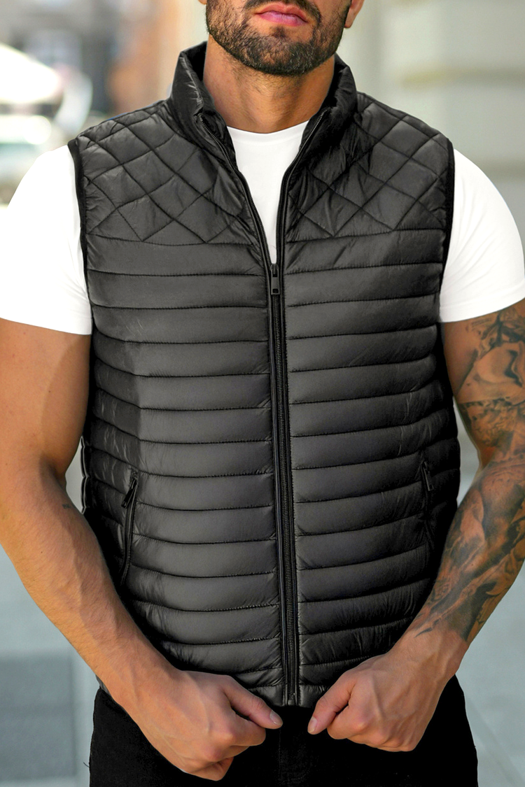 - Vestă pentru bărbăti cu design matlasat, potrivită pentru ținute de zi cu zi și sport-elegante.