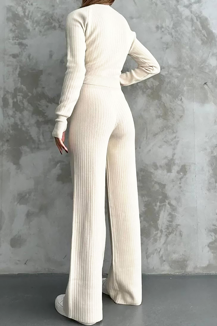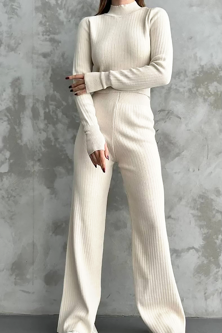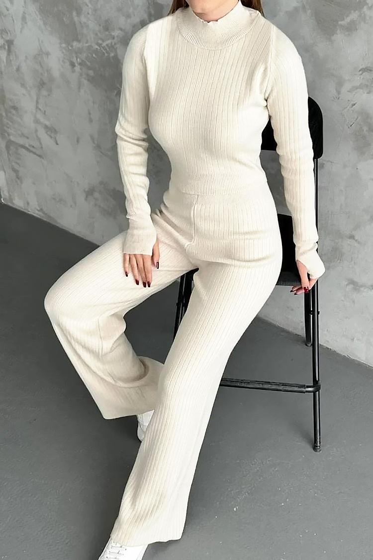 - Bluza are o lungime standard și o croială mulată, iar pantalonii au o croială evazată și talie înaltă.