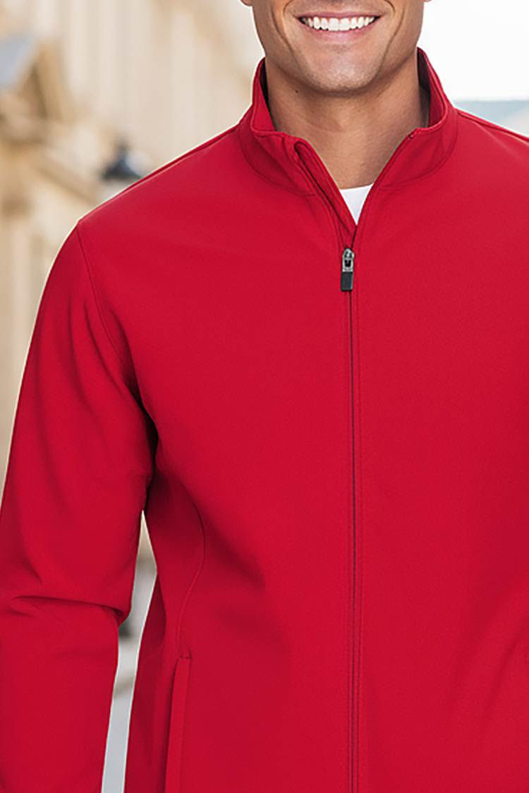 - Geacă pentru bărbăti cu model de culoare uni și buzunare practice cu fermoar ascuns, pe ambele părți, potrivită pentru viața de zi cu zi sau plimbări.