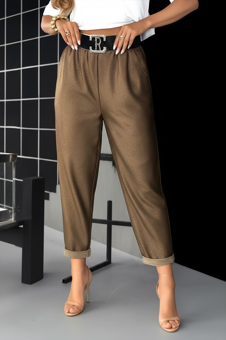 - Pantaloni de damă cu talie înaltă și croială evazată, potriviți pentru un look elegant de zi cu zi.