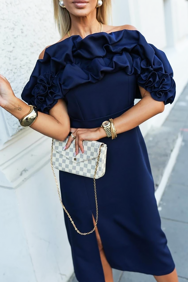 - Rochie midi cu un design atractiv, potrivită pentru viața de zi cu zi.