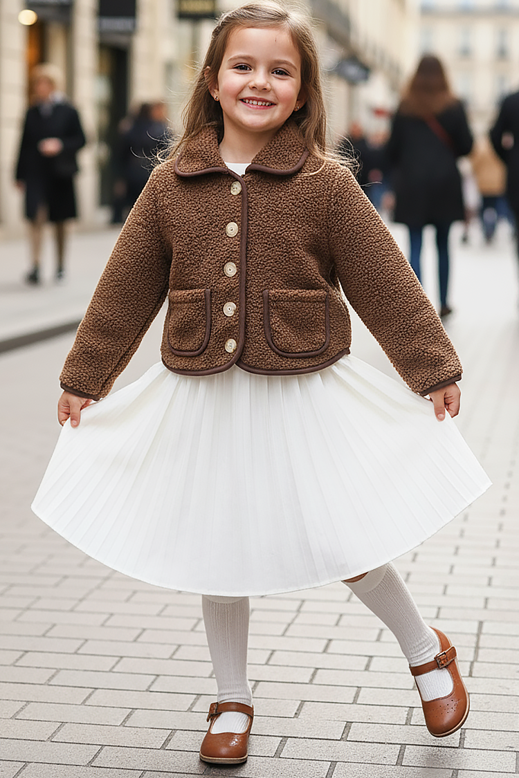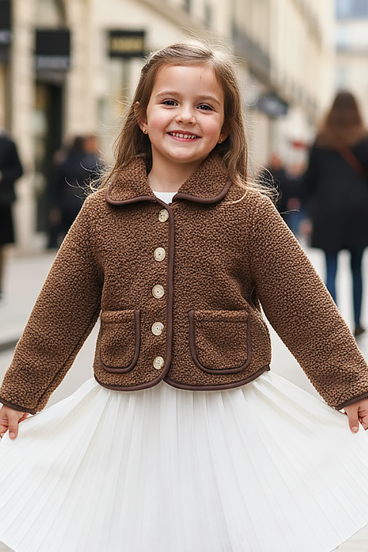 - Geacă practică pentru fete, cu design modern, buzunare confortabile și guler.