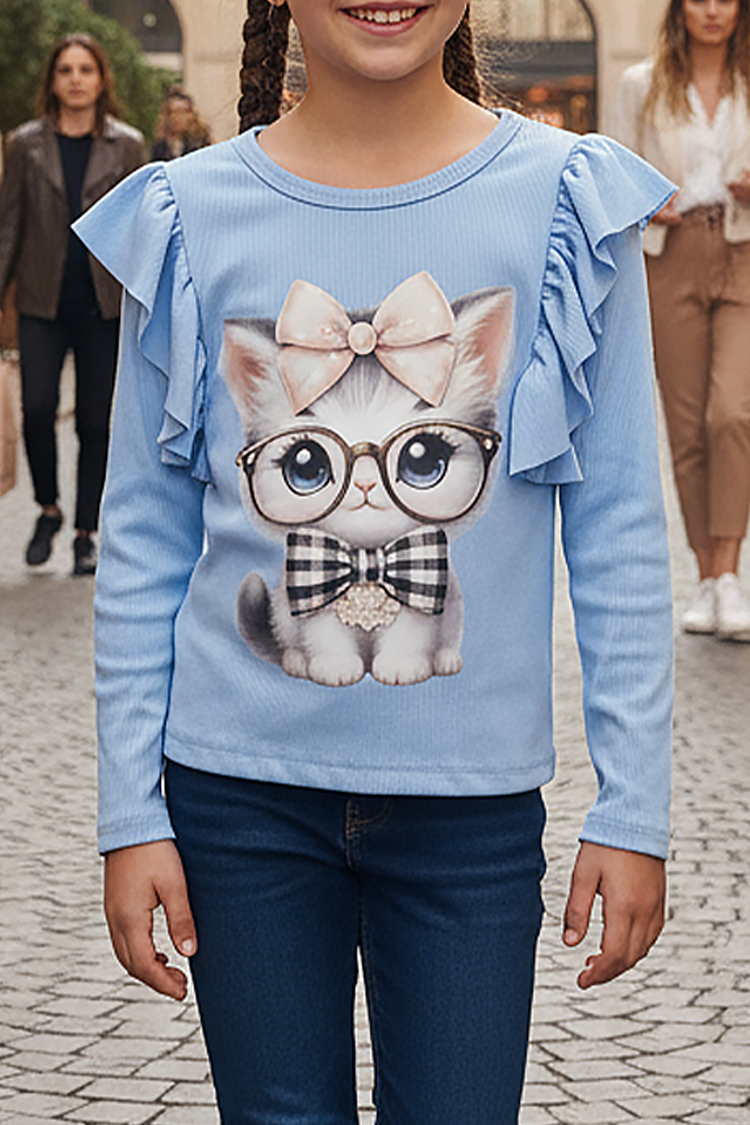 - Bluză modernă pentru fete, cu un imprimeu atractiv și la modă, potrivită pentru viata de zi cu zi.