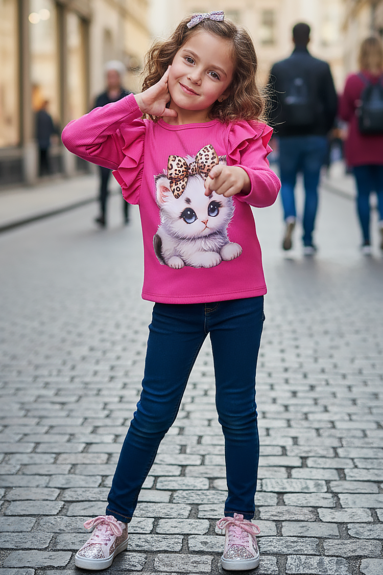 - Bluză modernă pentru fete, cu un imprimeu atractiv și la modă, potrivită pentru viata de zi cu zi.