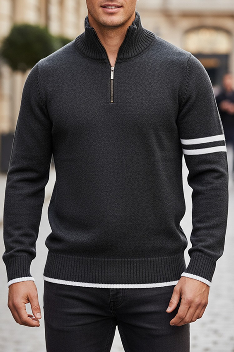 - Pulover pentru bărbăti modern, cu guler polo și fermoar, potrivit ca o completare la ținuta de zi cu zi.