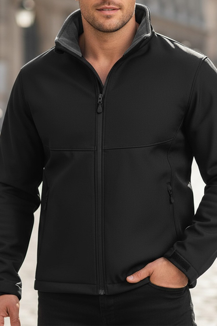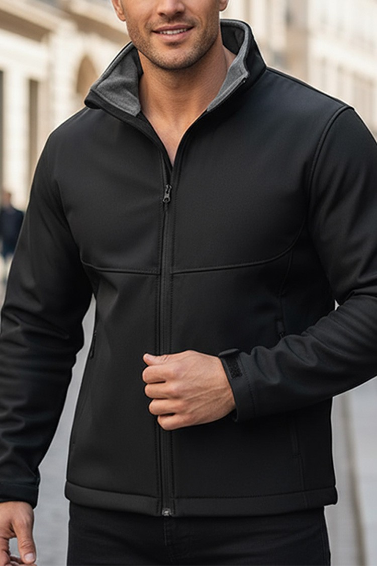 - O alegere practică pentru cei care prețuiesc confortul - o geacă softshell de culoare neagra.