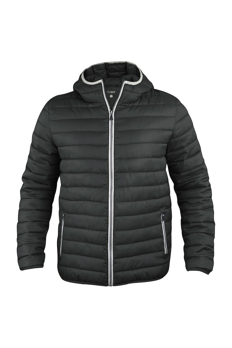- Geacă pentru bărbăti confortabilă, cu design matlasat orizontal, de culoare neagra, cu un stil sport, de zi cu zi.
