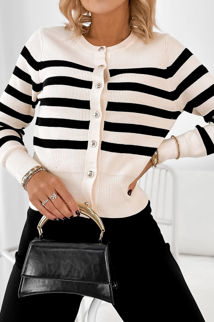 - Cardigan de dama moale și călduros în dungi, cu o croială mulată și un design confortabil, potrivit pentru viața de zi cu zi.