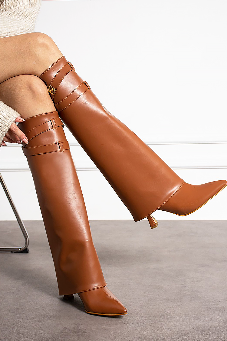 - Model actual de cizme de damă într-o culoare clasică, confecționate din piele ecologică.