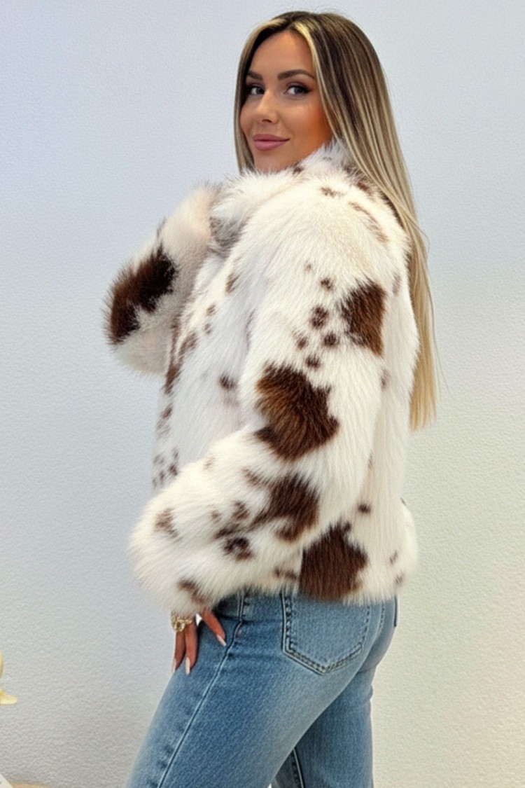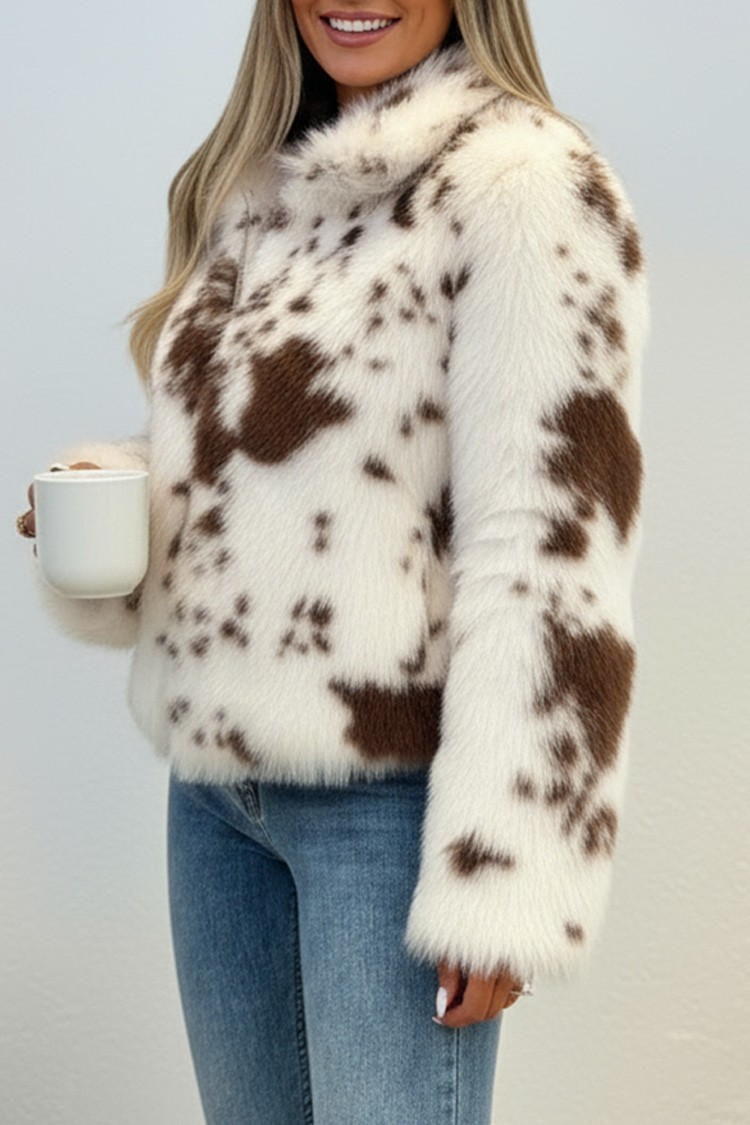 - Modelul are o croială confortabilă și practică,cu print vacă cu fermoar pe toată lungimea, ușor de utilizat.