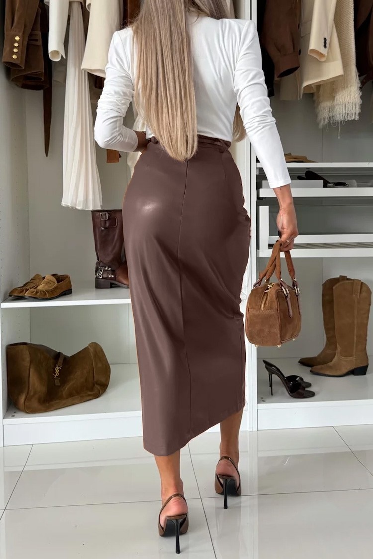 - Fusta vine cu o curea elegantă în aceeași culoare.