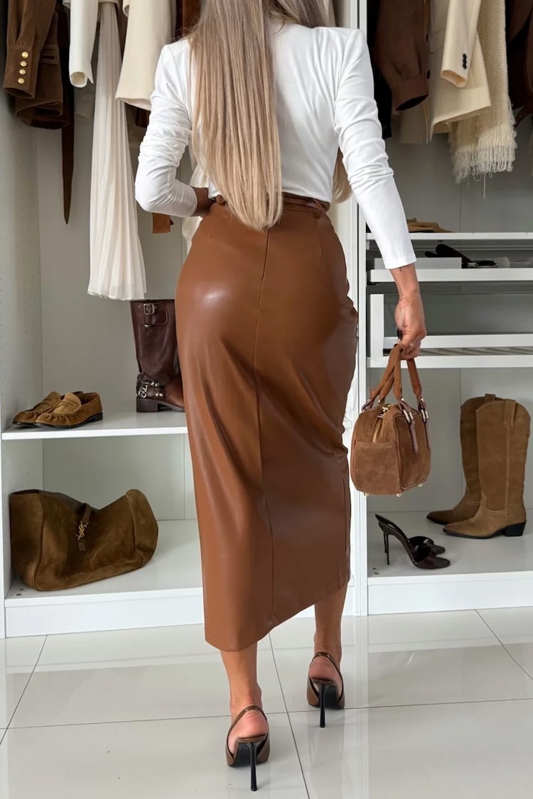 - Fusta vine cu o curea elegantă în aceeași culoare.