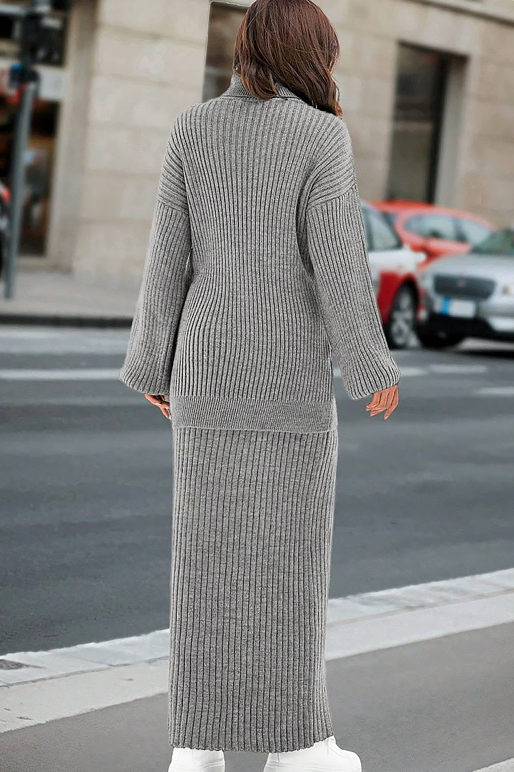 - Set modern din două piese - o fustă confortabilă și un pulover cu un design simplu.