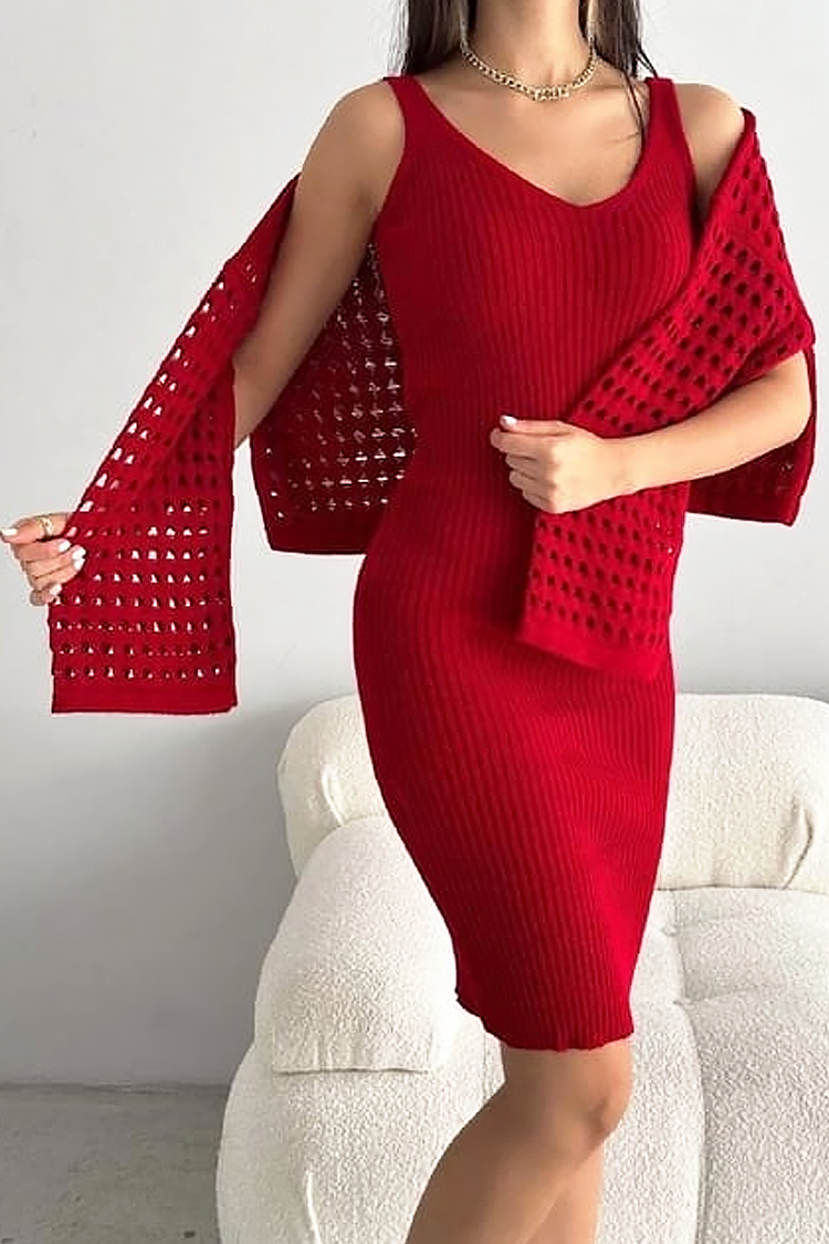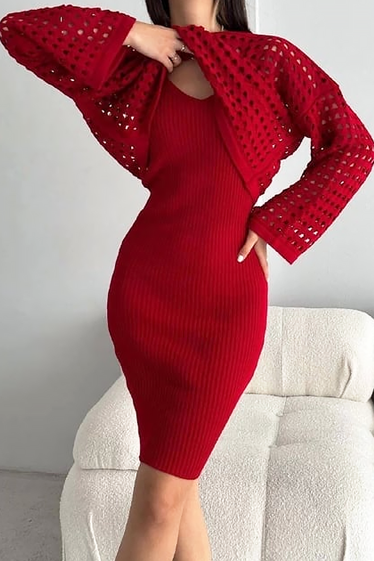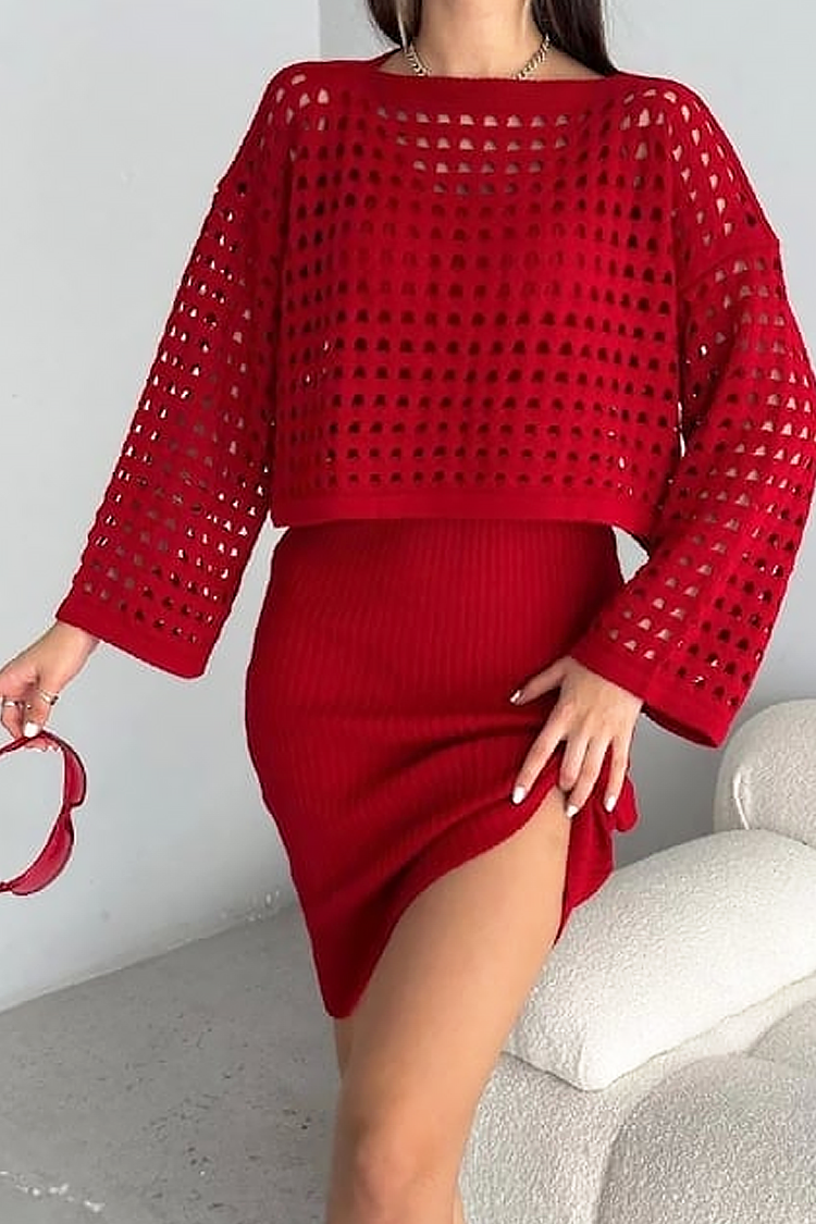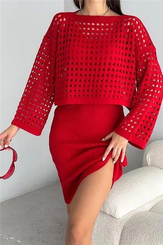 - Set de dama din două piese, format dintr-o rochie scurtă și un pulover spectaculos, potrivit pentru ținute la modă.
