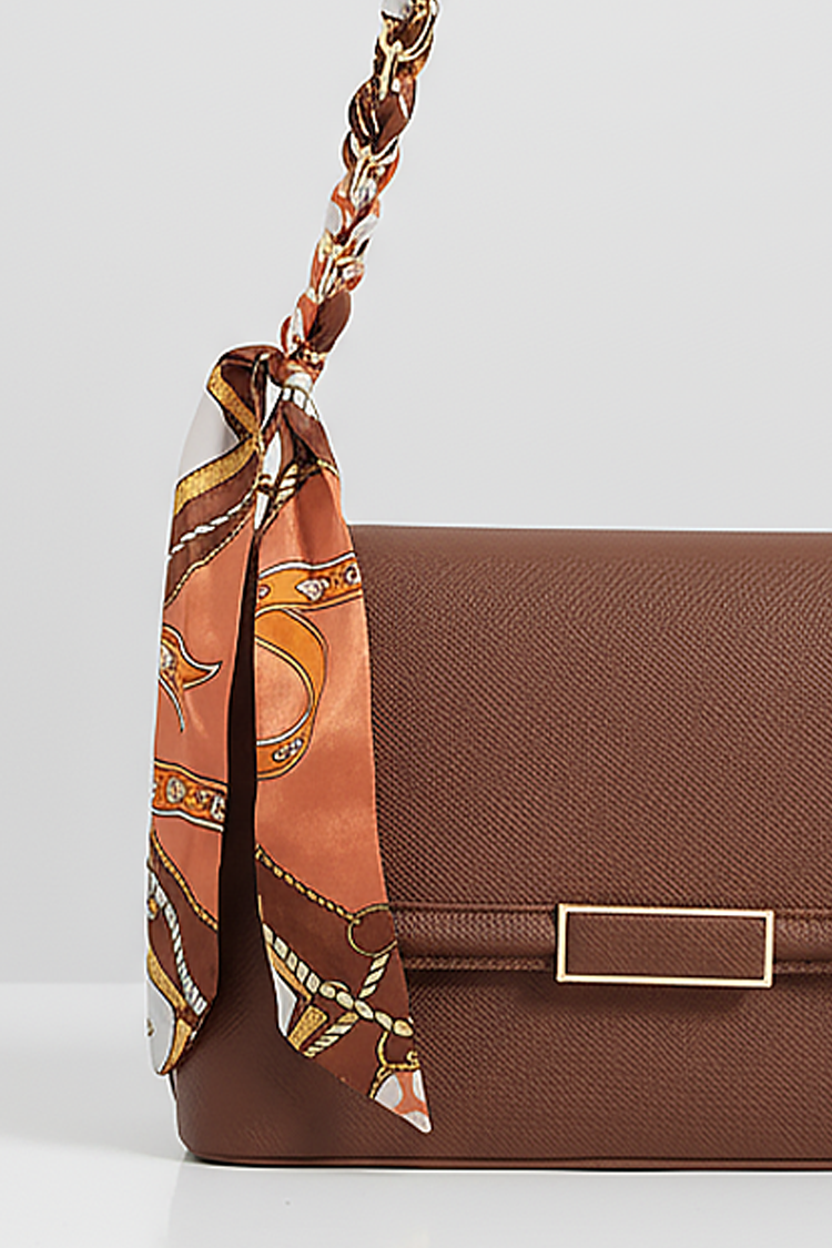 - Geanta are un mâner lung, un sistem de închidere impresionant și un accent elegant - o eșarfă.