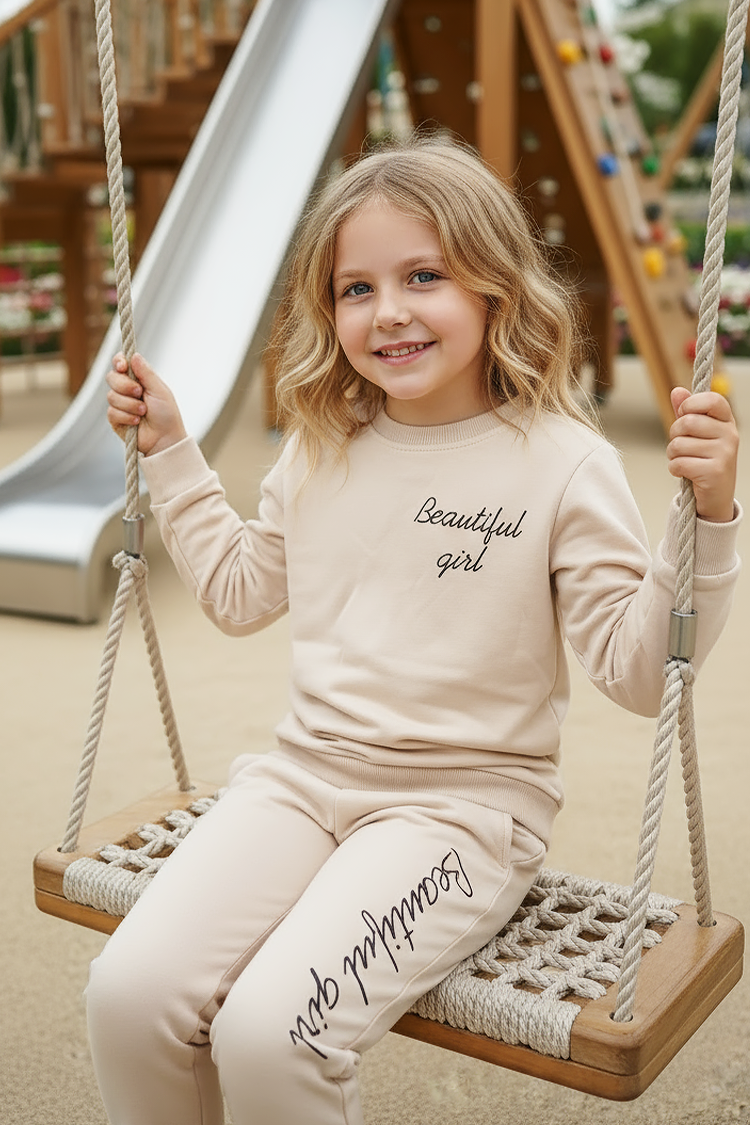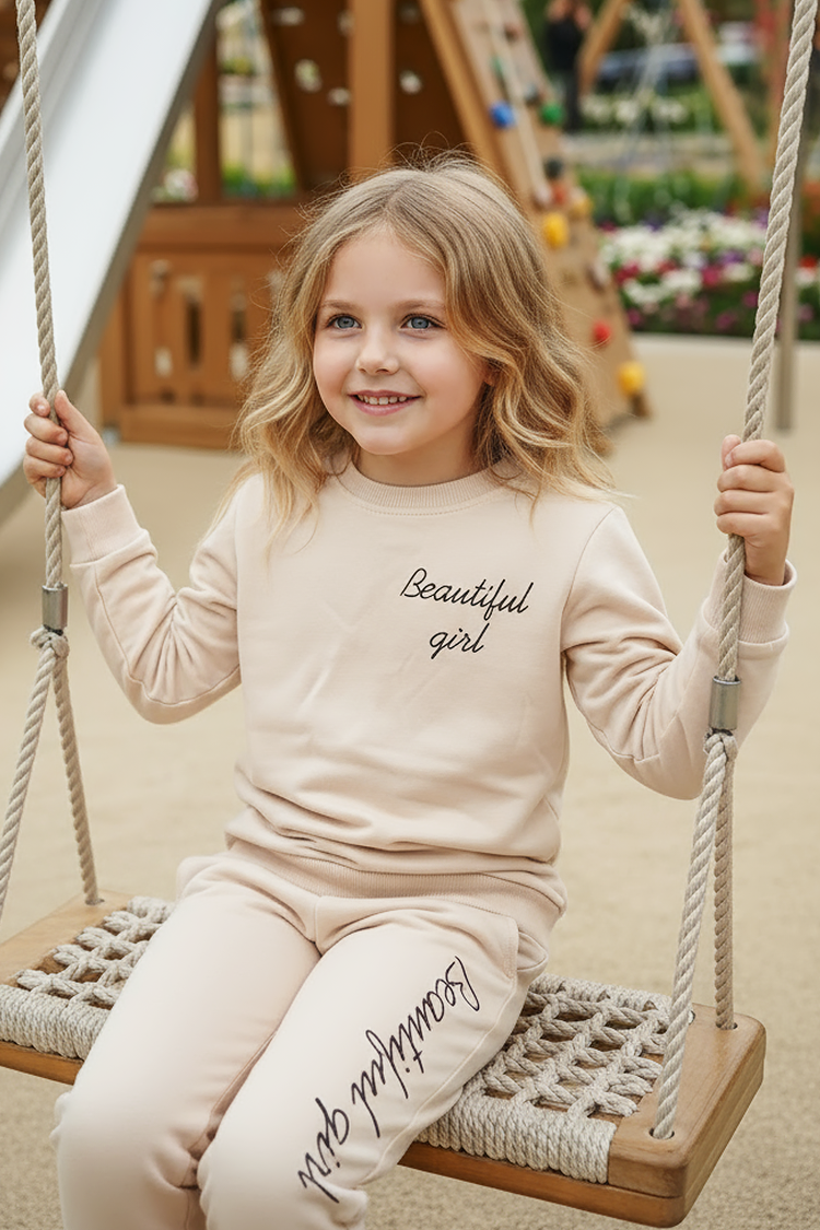 - Set din două piese pentru copii, pentru fetiță, format dintr-o bluză și pantaloni cu o inscripție atractivă.