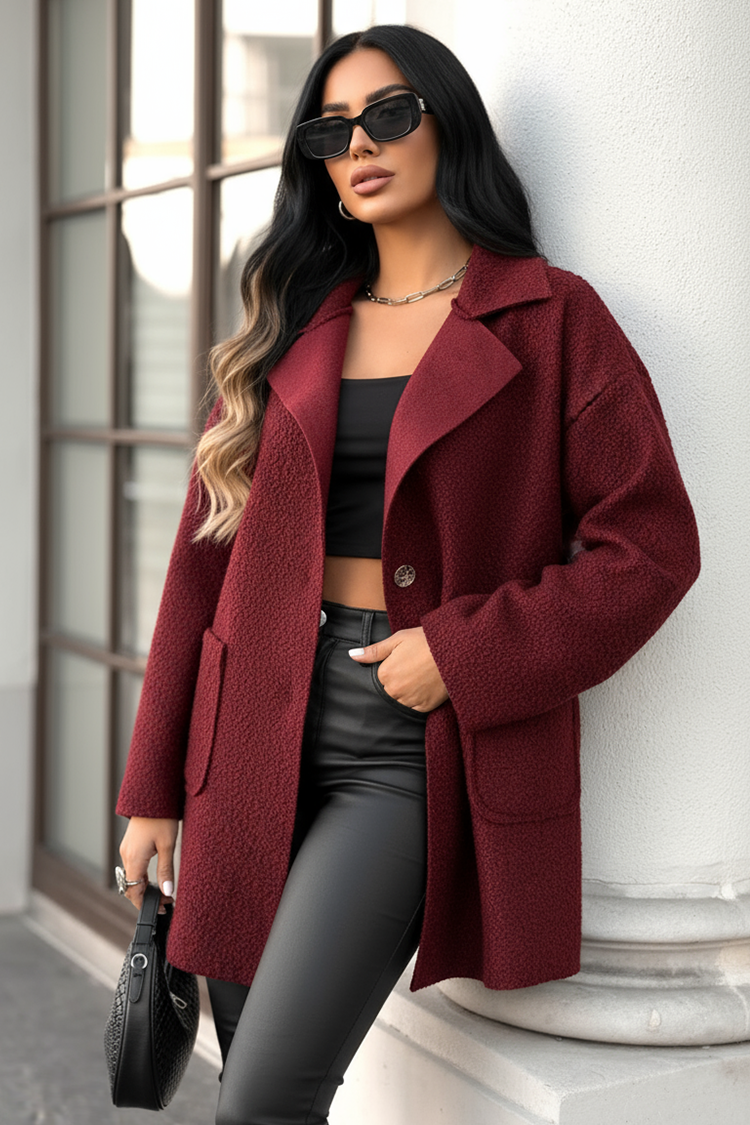 - Modelul are o croială confortabilă oversize, buzunare, guler și se închide cu nasturi.