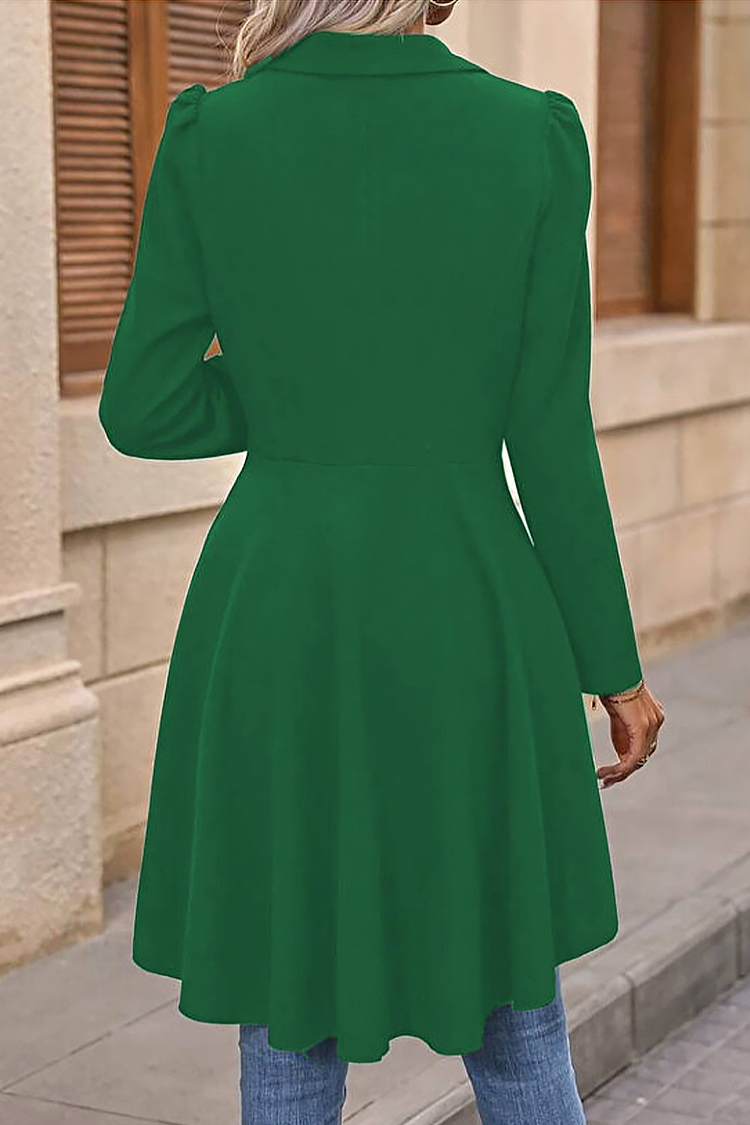 - Modelul are o croială asimetrică și elegantă, guler și o frumoasă culoare verde.