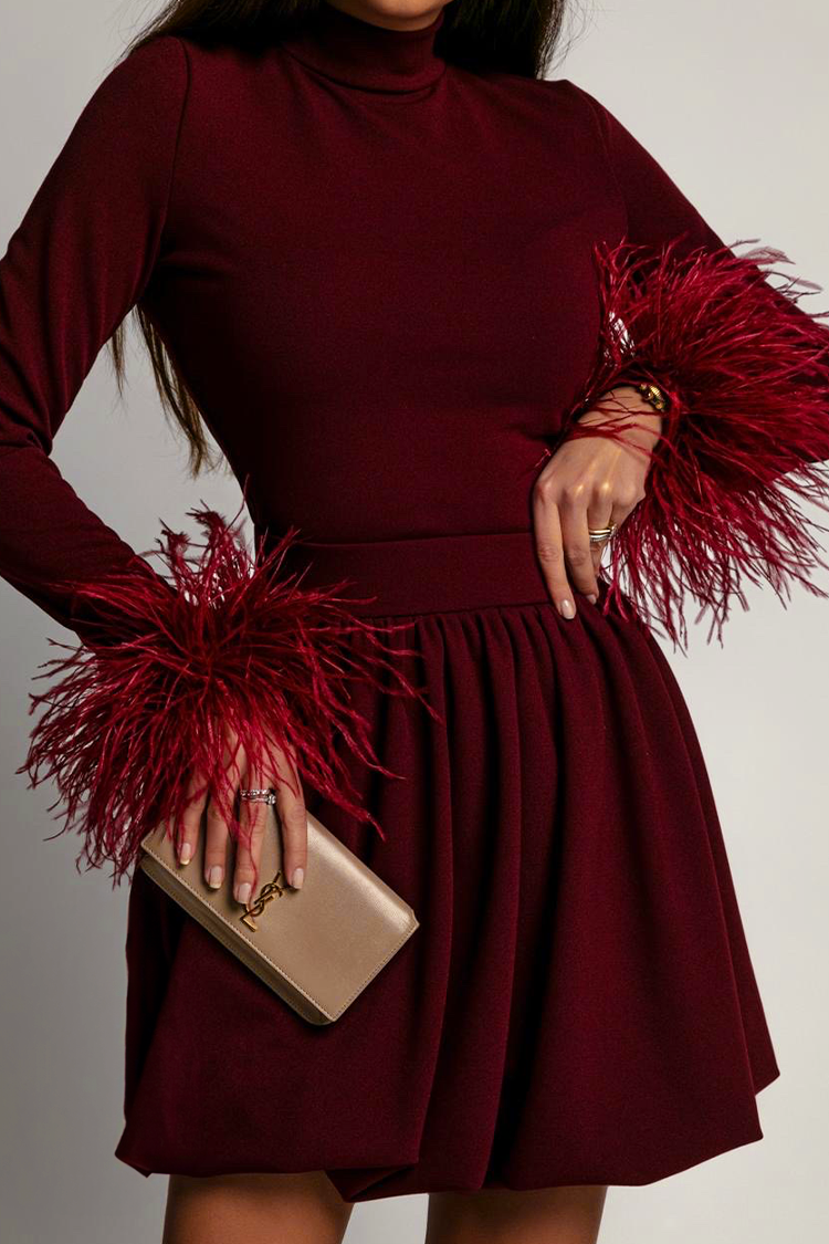 - Set elegant de culoare roșie, format dintr-o bluză cu mâneci spectaculoase și o fustă.