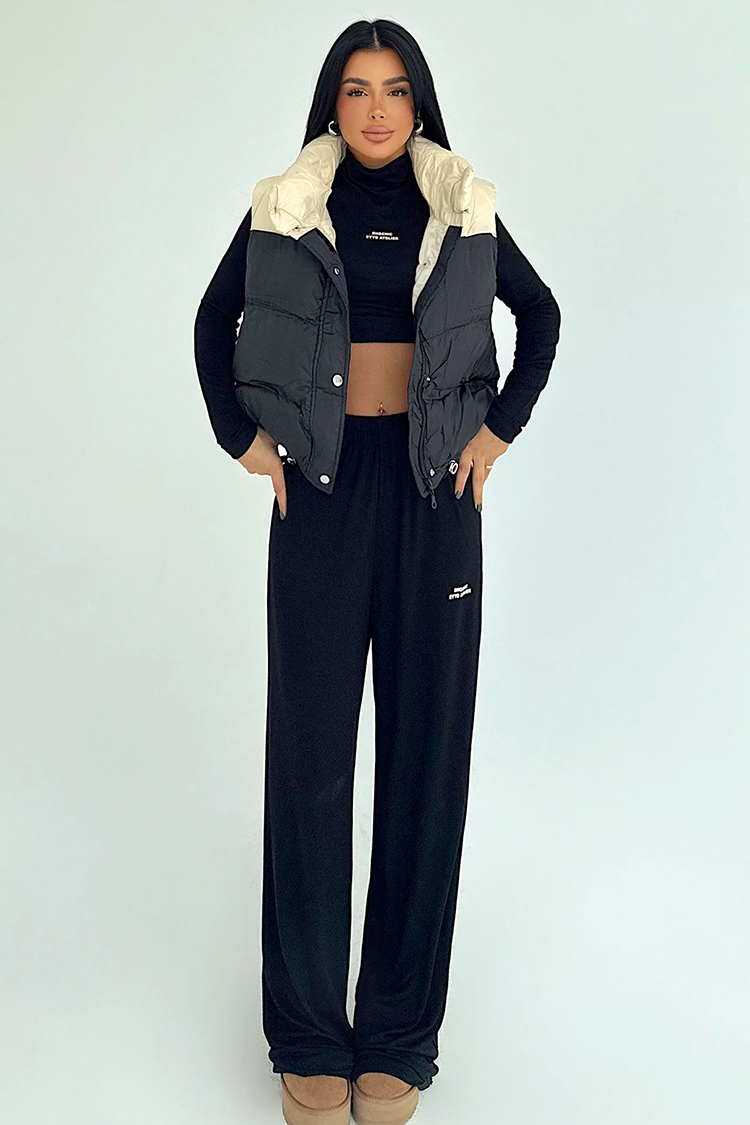 - Vesta are o croială clasică, guler confortabil și este de lungime scurtă.