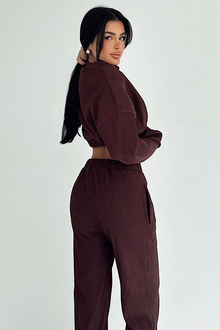 - Set modern din două piese - pantaloni confortabili și o bluză, potrivit pentru viața de zi cu zi.