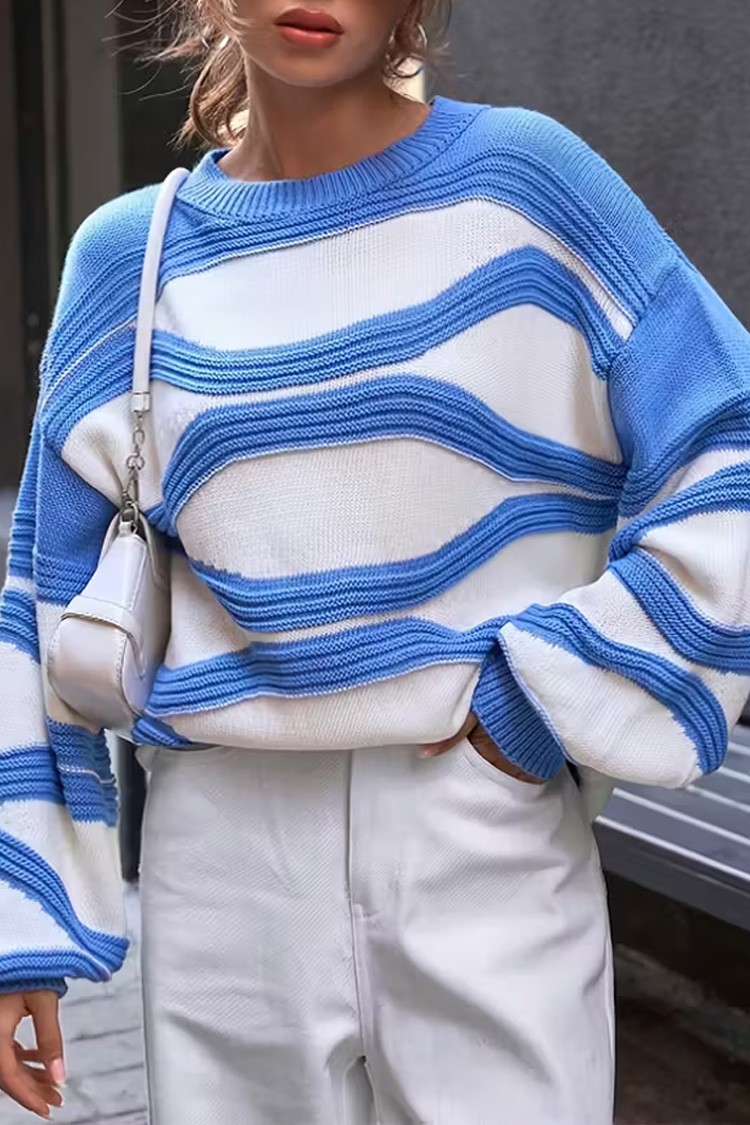 - Pulover elegant de damă, cu un model spectaculos, potrivit pentru ținute de zi cu zi și la modă.