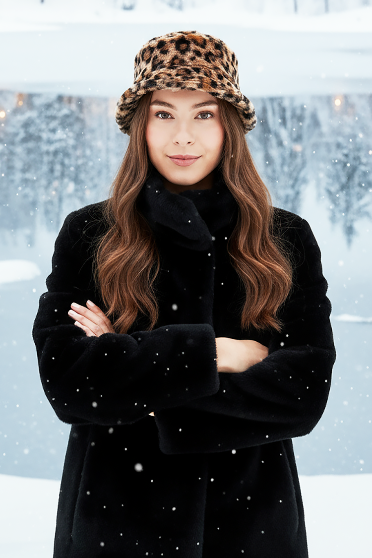 - Pentru un look elegant în zilele reci, alege această căciulă cu animal print.
