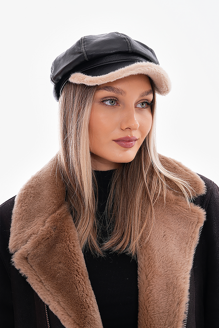 - Pentru un look elegant în zilele reci, alege această șapcă pufoasă cu cozoroc.