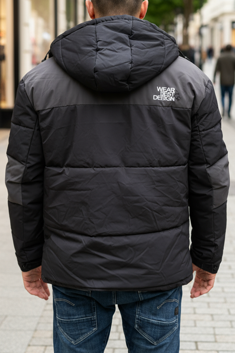 - Geacă de iarnă elegantă și călduroasă pentru bărbați, care combină confortul cu designul urban modern.