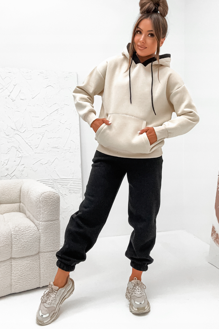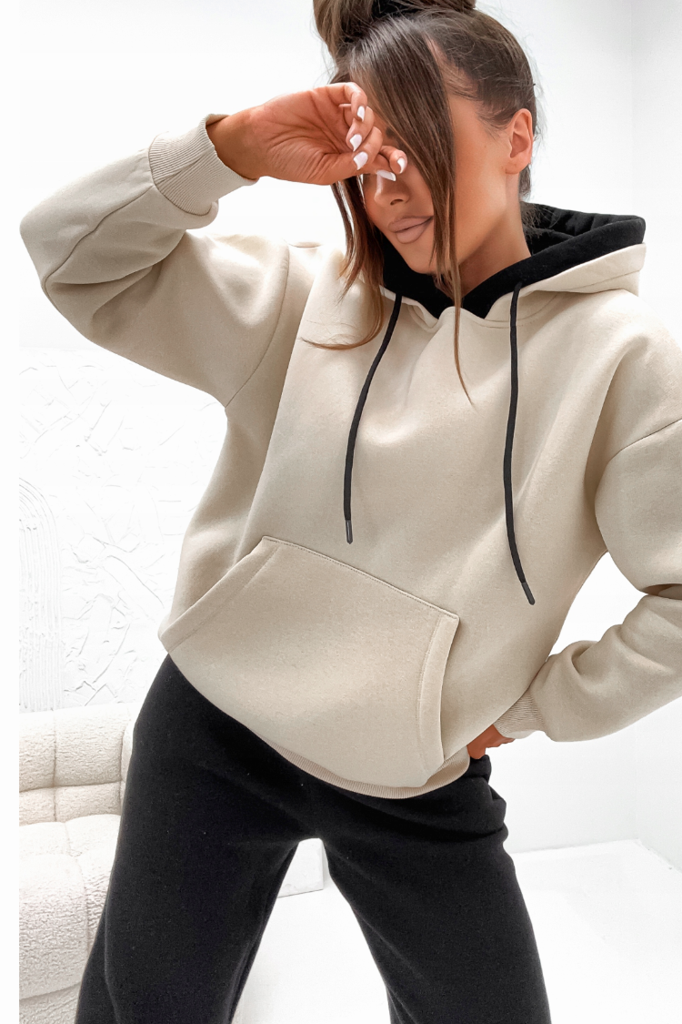 - Partea de sus este un hanorac lejer cu glugă.