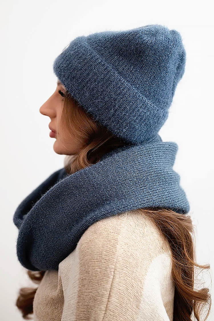 - Completează-ți ținuta cu un set din două piese - căciulă fular într-o culoare clasică.
