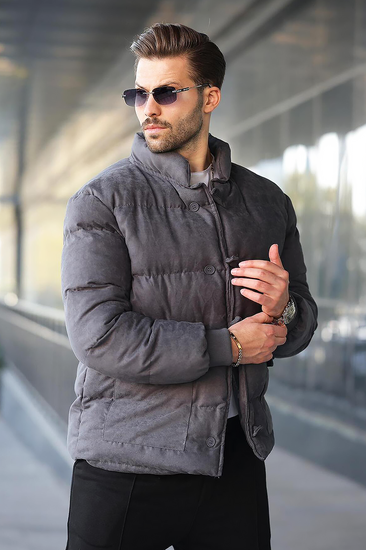 - Geacă pentru bărbăti practică, de culoare gri, potrivită pentru zilele reci.