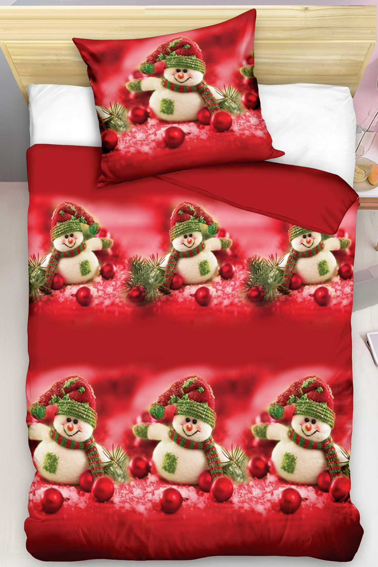 - Set de lenjerie de pat pentru copii din două piese cu dimensiunile 140x200 cm, confecționat din satin de bumbac de înaltă calitate, cu motive de Crăciun.