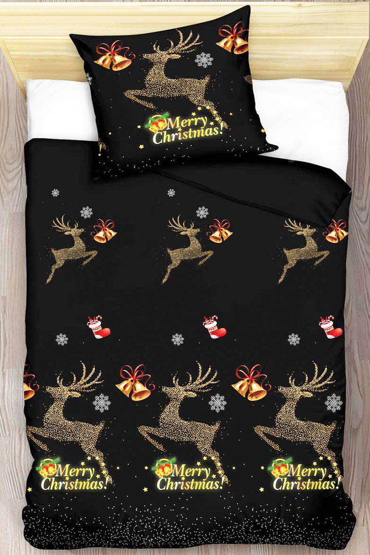 - Set de lenjerie de pat pentru copii din două piese cu dimensiunile 140x200 cm, confecționat din satin de bumbac de înaltă calitate, cu motive de Crăciun.