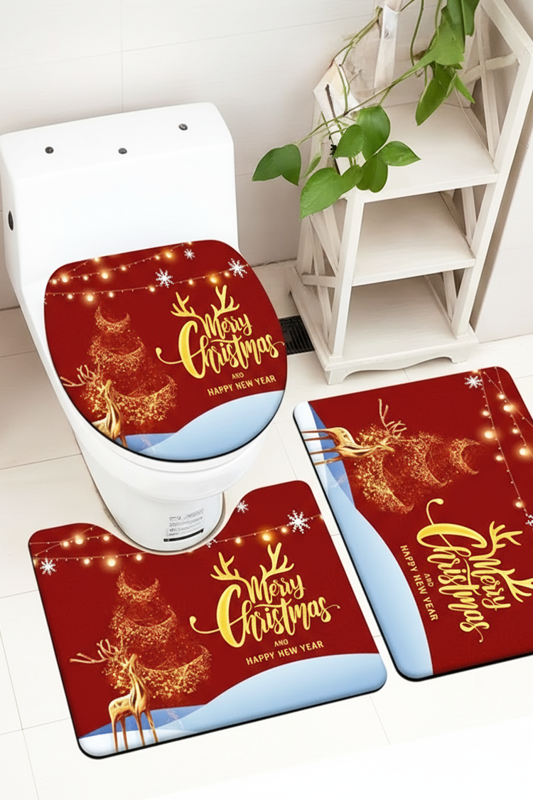 - Pentru o casă mai confortabilă! Set covoras de baie format din 3 piese, cu model de Crăciun.