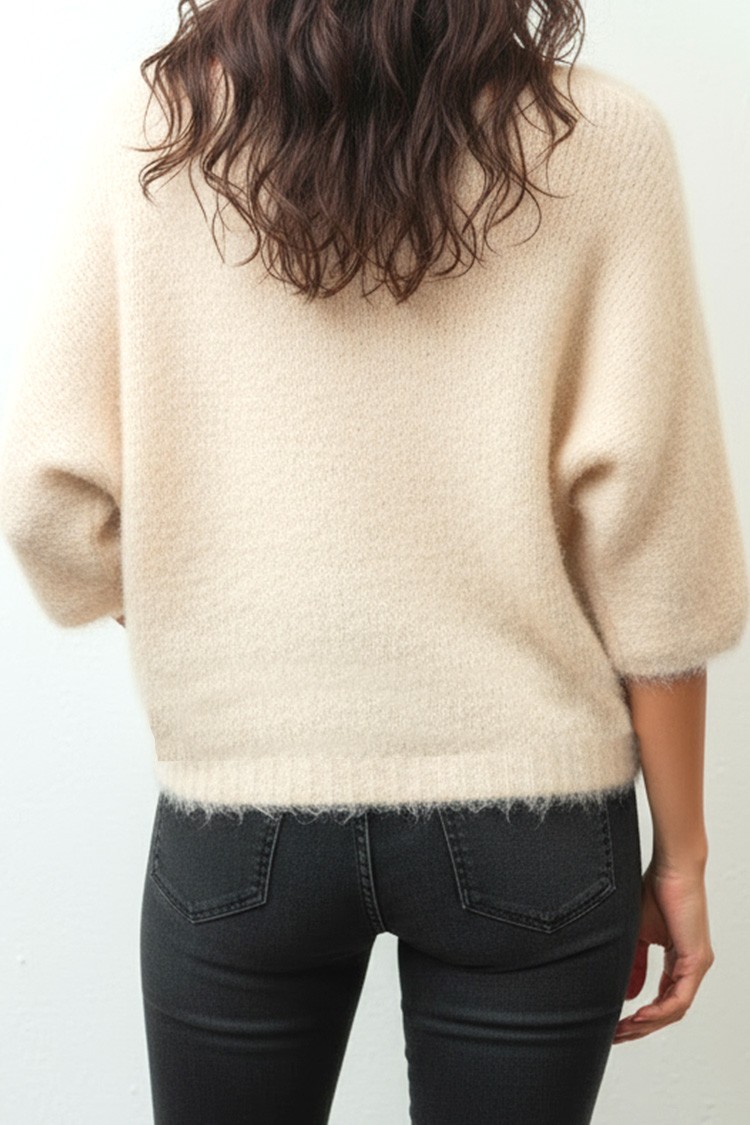 - Pulover clasic moale pentru femei, de culoare ecru, potrivit pentru viata de zi cu zi.