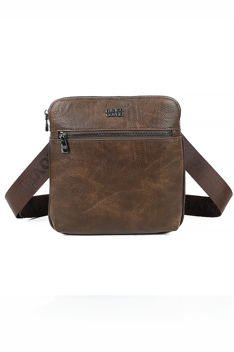 - Model actual de geantă de umăr pentru barbati de culoare maro, cu curea reglabilă.