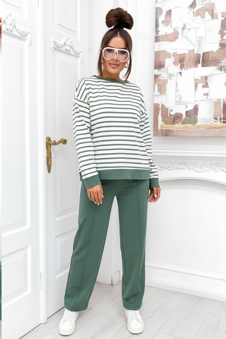 - Set de dama din două piese pentru viata de zi cu zi cu un model în dungi atrăgător.