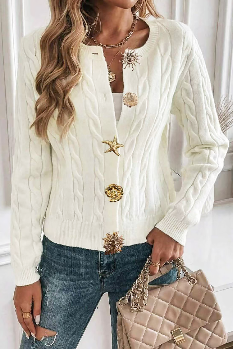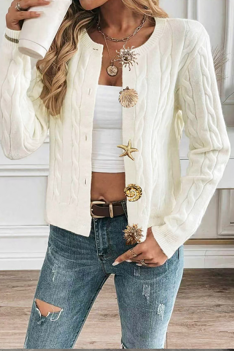 - Cardigan de damă cu model de culoare uni, potrivit pentru ținute la modă de toamnă.
