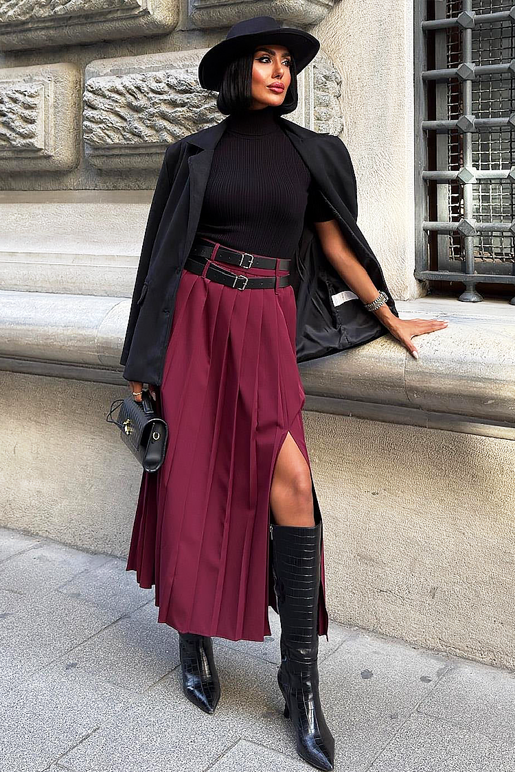 - Modelul are o lungime midi, talie înaltă și o crăpătură sexy.