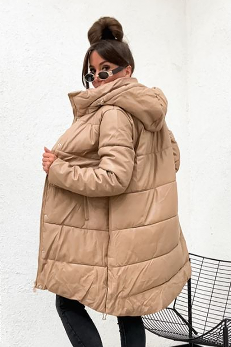 - Modelul are o croială confortabilă, închidere practică și glugă.
