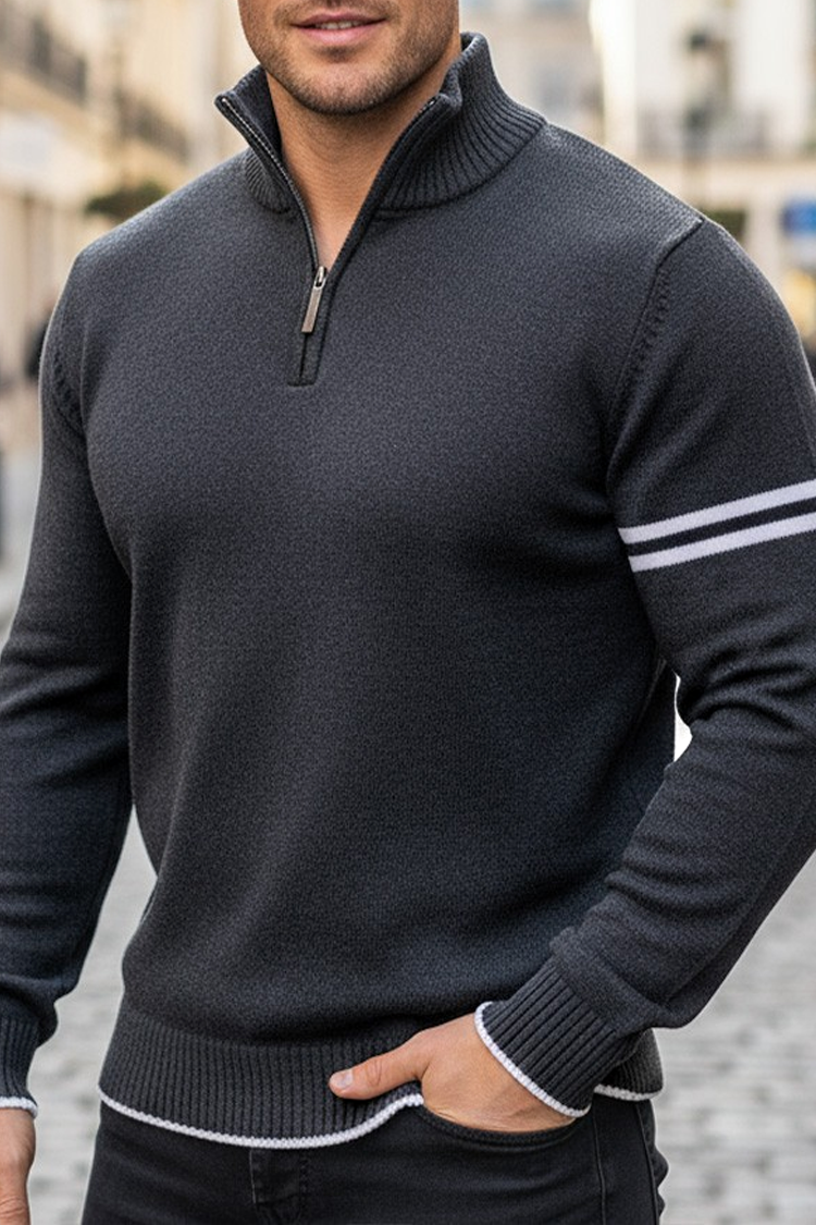 - Pulover pentru bărbăti modern, cu guler polo și fermoar, potrivit ca o completare la ținuta de zi cu zi.