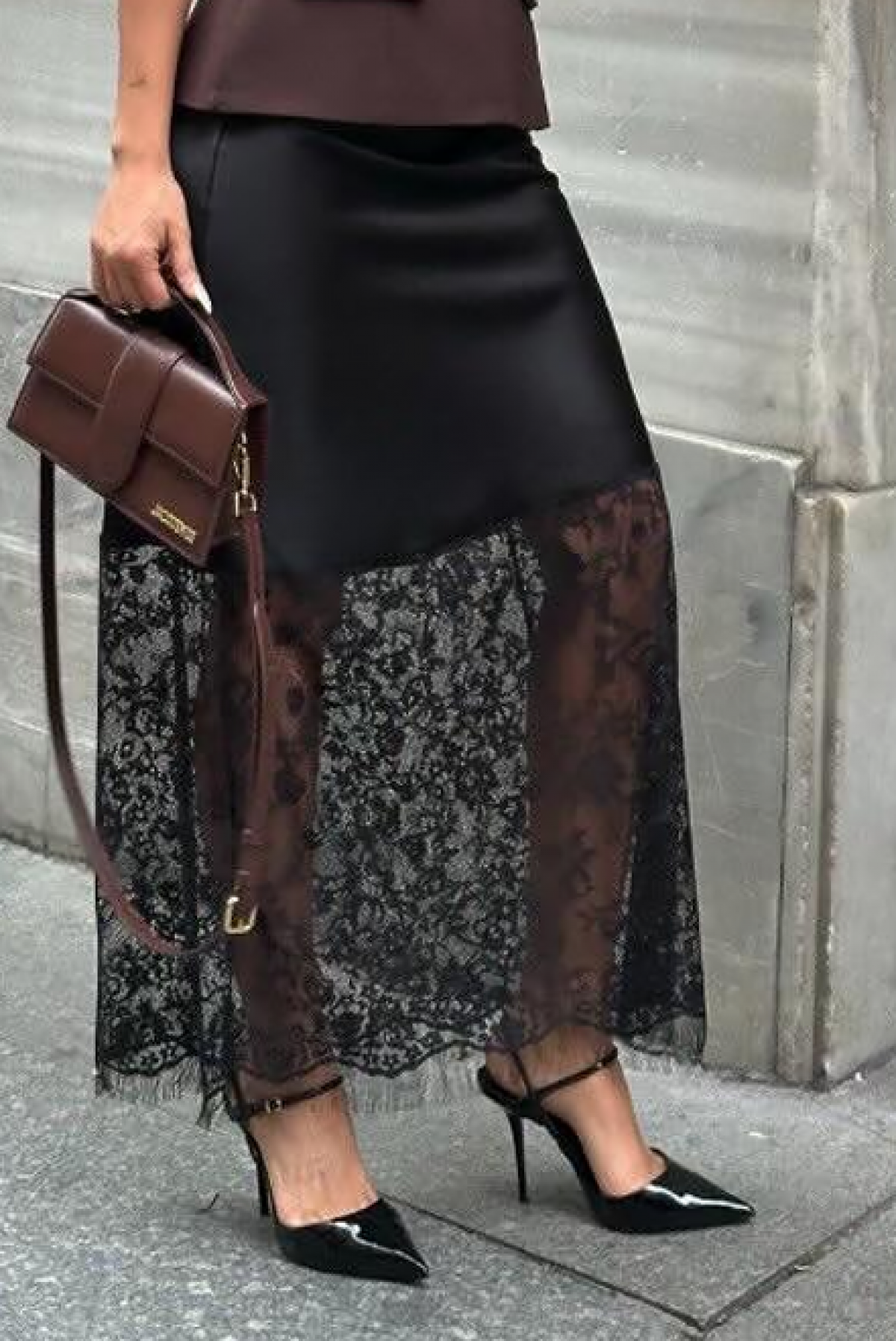 - Fustă midi elegantă și delicată, în culori clasice, potrivită pentru diverse ocazii de modă.