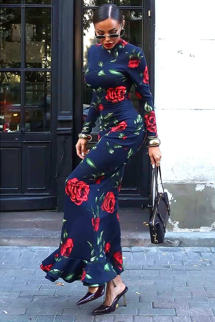 - Pentru un look elegant, alege această rochie lungă cu un model atractiv.