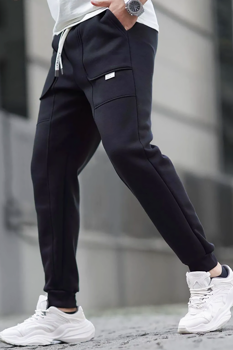 - O ofertă confortabilă pentru timpul liber sau sport - model simplu de pantaloni de trening de culoare neagră.