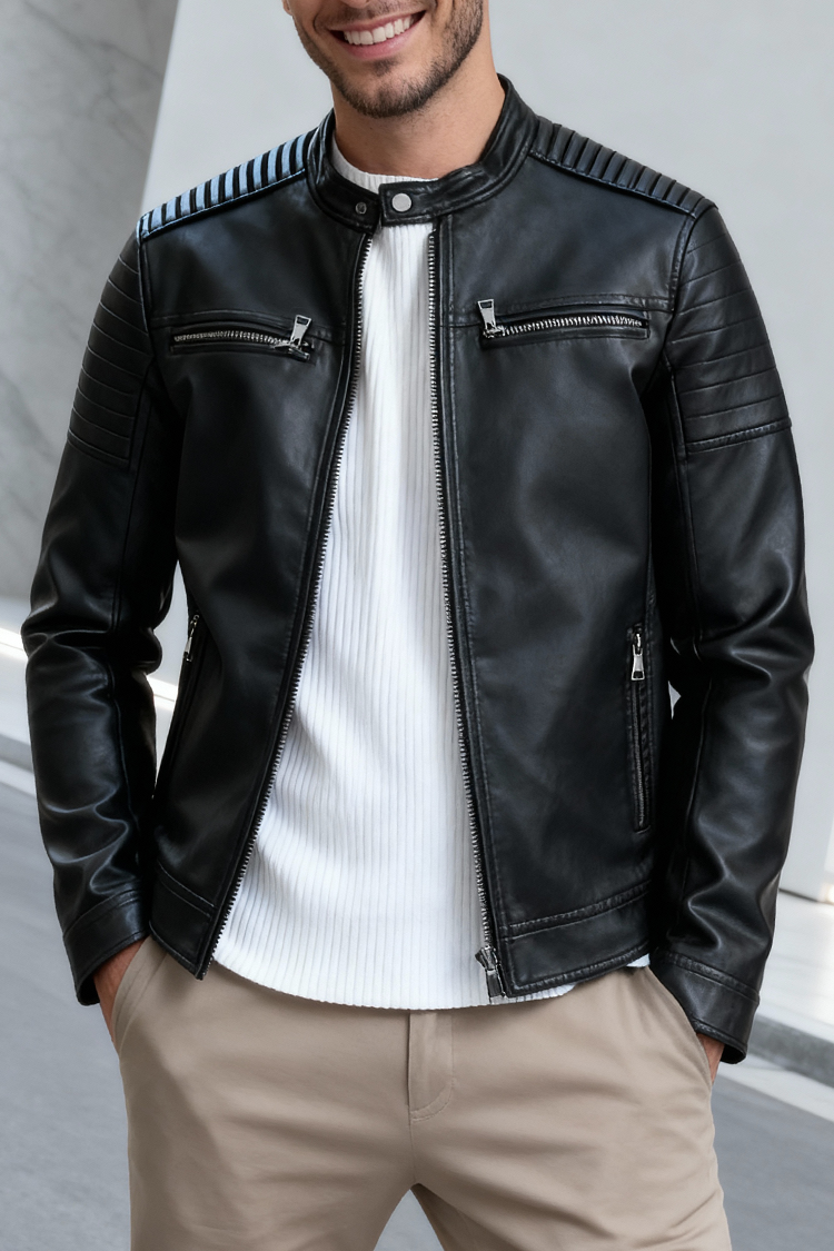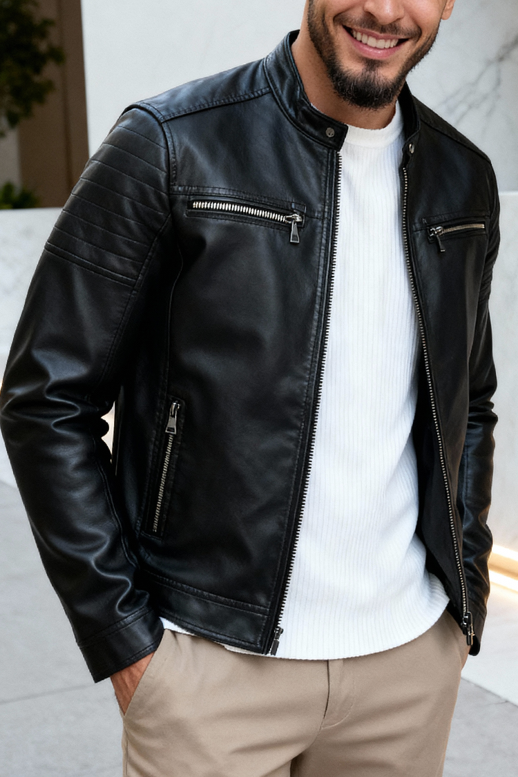 - Geacă pentru bărbăti cu un design atractiv de culoare neagră, potrivită pentru zilele mai răcoroase.