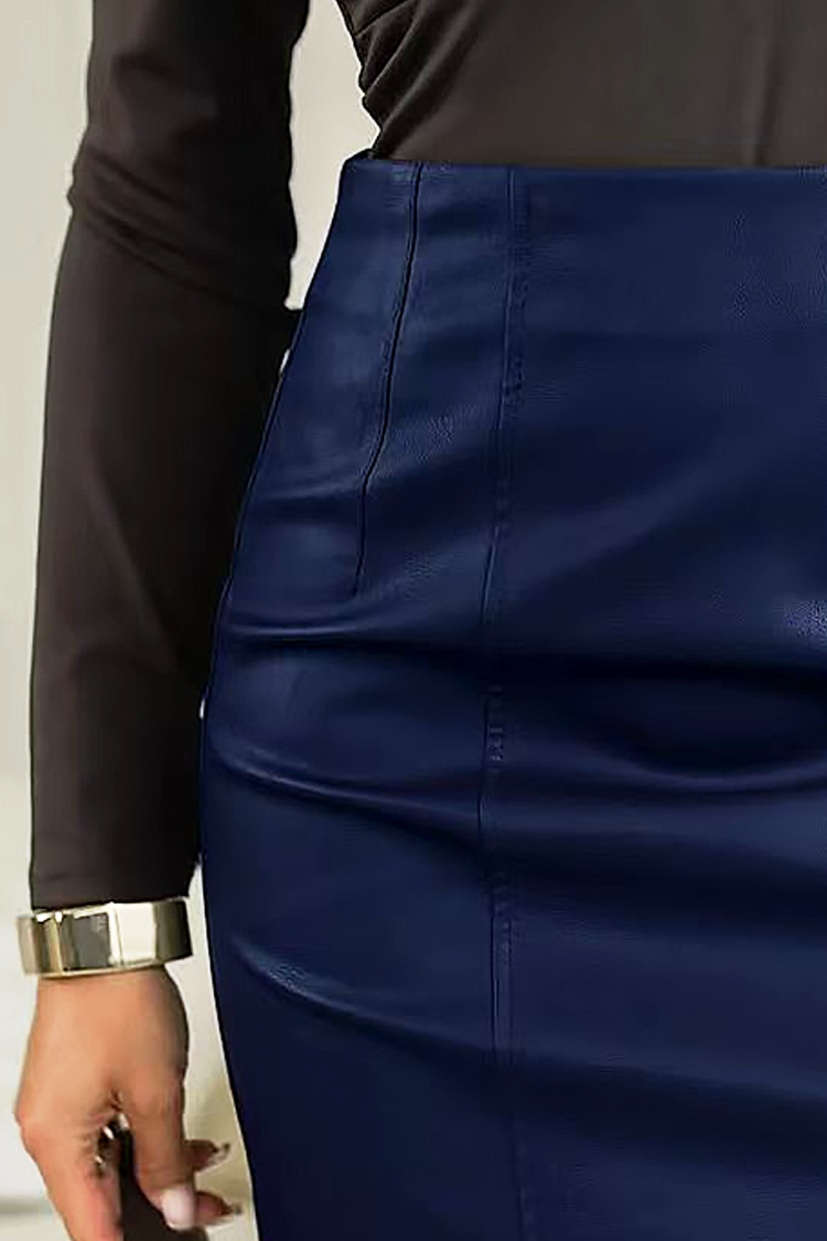- Fustă scurtă modernă, confecționată din piele ecologică de înaltă calitate și potrivită pentru diverse ocazii.